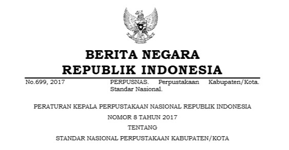 Foto Tangkapan Layar oleh penulis via https://peraturan.bpk.go.id/Details/288933/perka-perpusnas-no-8-tahun-2017, “Standar Nasional Perpustakaan Kabupaten/Kota Tahun 2017